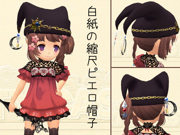 女キャラ用の縮尺機能つきのピエロ帽子白紙です。