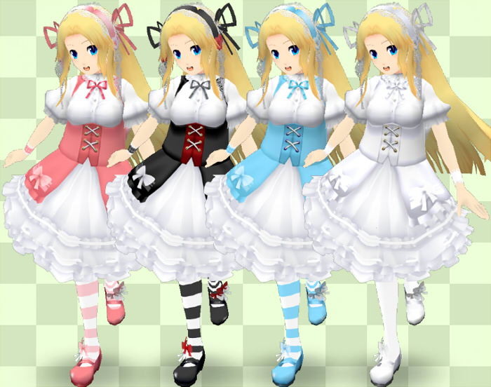 女キャラ用 ややステレオ気味のロリータ衣装のテクスチャセットです。