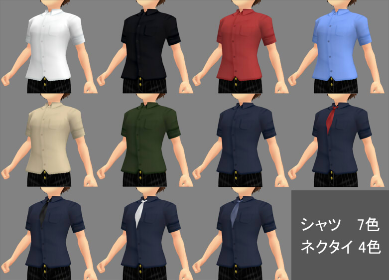 無地の半袖のシャツとネクタイのテクスチャセットです。