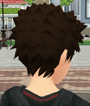 男キャラのショートヘアーに長めの前髪ともみあげを付け足したものです。