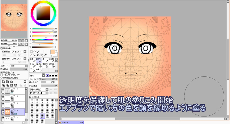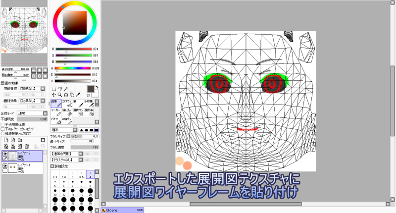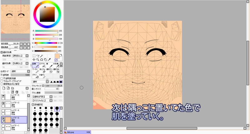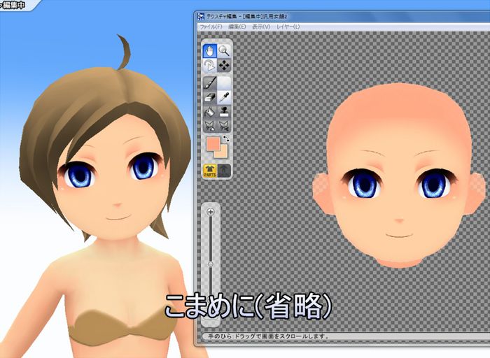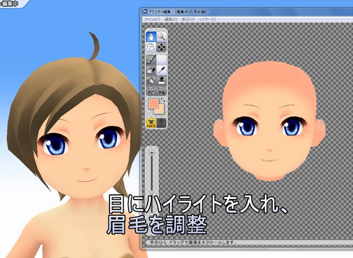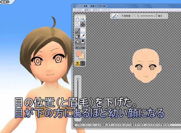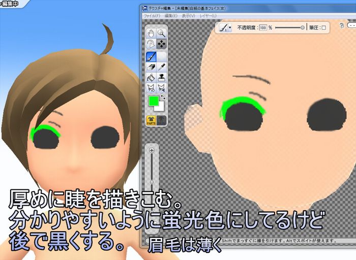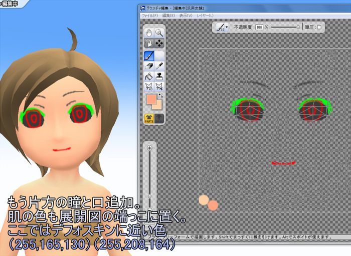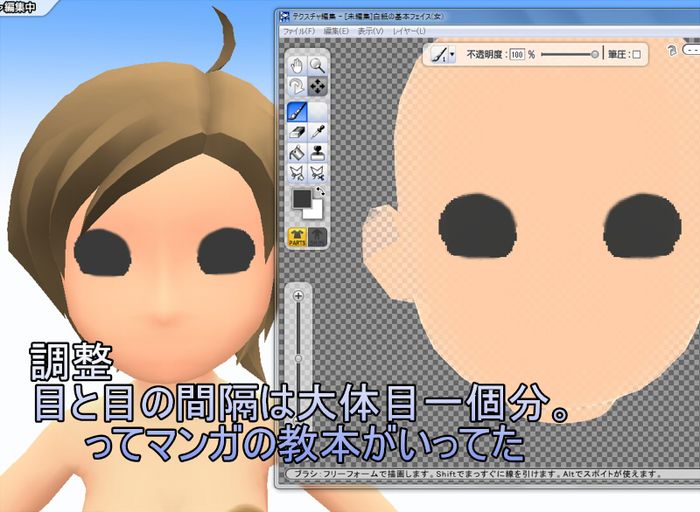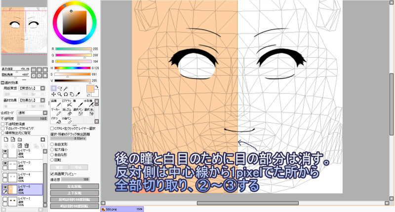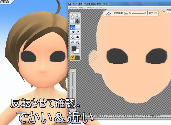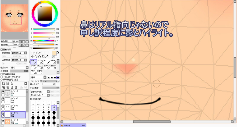 うまく位置がとれない人は既存のフェイスを参考に眉目鼻の位置を