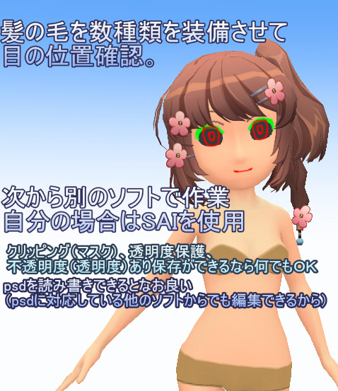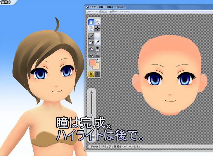 PTCだと目の中心に瞳を置くより、すこし寄り目気味にした方が違和感が無いような気がします