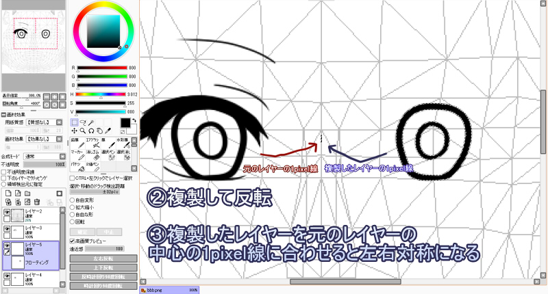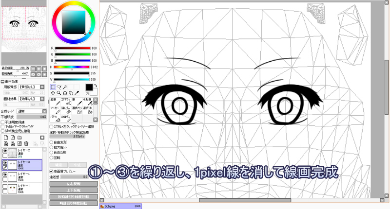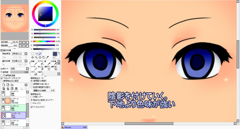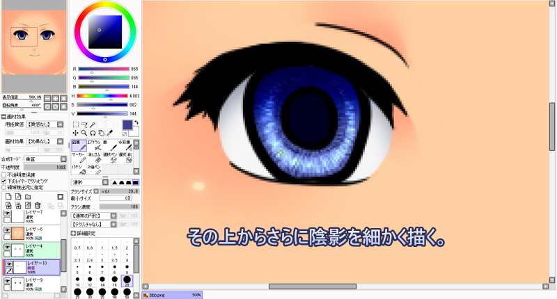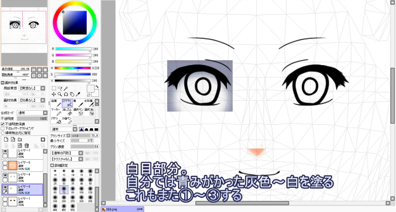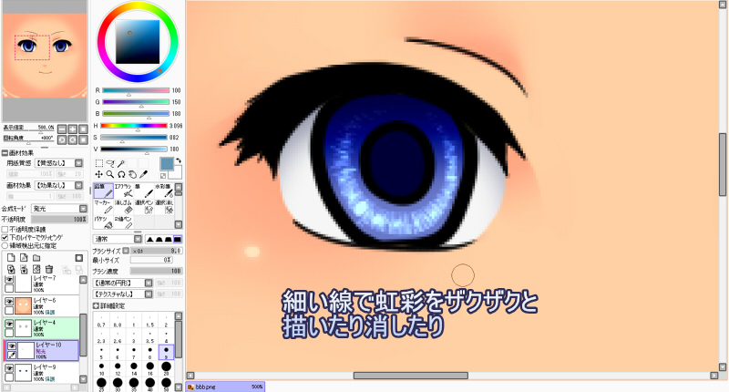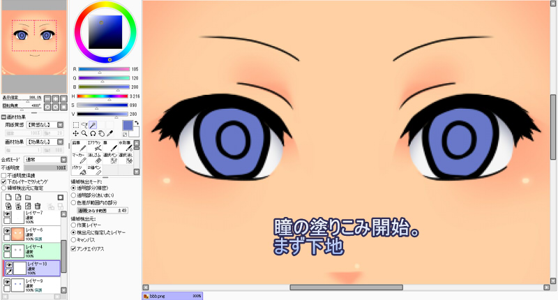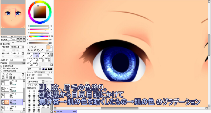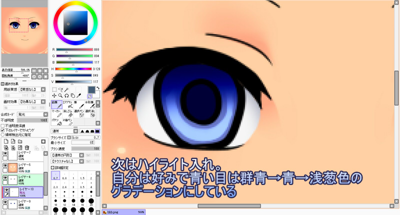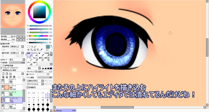 やっと生きてる眼になりました。最後のハイライトは別レイヤーにすると