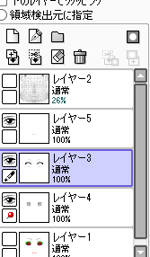 これで目・瞳・眉毛のレイヤーを同時に下にシフト移動させます。