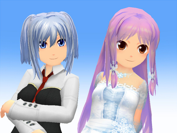 女のキャラクターは眉毛を細く、睫を厚く描いています。